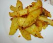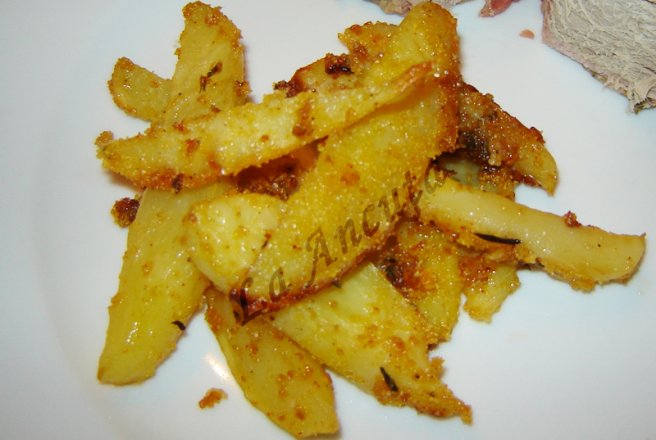 Cartofii se spala, se curata si se taie fasii mai groase.