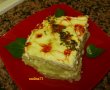 Se bat 2 oua crude cu smantana, se toarna deasupra si se pune la cuptor pt 20 minute pana se rumenesc bine