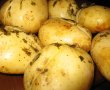 Cartofii se spala foarte bine, apoi se taie pe lung, in doua, dar nu de tot. In crestatura se aseaza o feliuta de unt, putina verdeata deasupra si sare. Se impacheteaza bine fiecare cartof in folie de aluminiu, se aseaza intr-o tava si se coc in cuptorul incins cam 45 de minute. Se verifica cu o furculita, daca intra usor in cartof inseamna ca sunt gata!