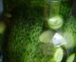 Intr-un borcan de 3 kg : pe fundul acestuia se aseaza o cracuta visin, 2 foi de vita, castraveti, usturoi, piper, pe la jumatate se mai pune o cracuta si foi de vita, se pun castraveti si tot asa pana sus. Inchidem cu vita de vie si usturoi.