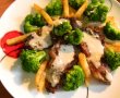 Nu am dat cantitati la brocolli si la cartofi prajiti . Fiecare consuma dupa cum il lasa constiinta :d