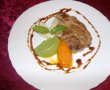 Platingul: Se va lua din piureurile rezultate cate o lingura si se va aranja ca in imaginile alaturate, aranjam si carnea langa si facem un décor din acetto balsamico, decoram cu o frunzulita de busuioc.