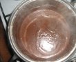 Glazura: Se amesteca frisca, laptele, zaharul si ciocolata si se pun pe foc mestecand mereu pana ce a inceput sa se topeasca ciocolata, dupa se adauga cacao si faina si se amesteca bine si se pune din nou pe foc pana se ingroasa putin toata compozitia. Cat era inca fierbinte am turnat deasupra glazura de ciocolata. Dupa ce se mai raceste tot se scoate inelul formei de tort si se muta prajitura pe un platou. Portionati prajitura si o puteti servi.