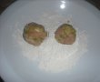 din compozitia obtinuta formam bilute pe care le dam prin faina,apoi le prajim.noi le-am servit cu salata de rosii.