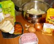 Taiem ceapa bucati potrivite si o punem impreuna cu cateii de usturoi curatati de coaja, la robot astfel incat sa obtinem o pasta. Daca nu aveti robot, tocati foarte foarte marunt ceapa si pisati usturoiul.