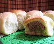 Fiecare parte o intindem sub forma rotunda,la mijlocul careia punem o chifteluta si adunam aluatul sub forma unei boccelute.