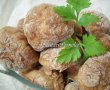 Se formeaza chiftelutele cu mainile umede ,se trec prin faina si se pun in tava cu hartie de copt sau presarata cu faina