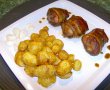 Se pune intr-o tava uleiul si se pun ciocanelele invelite in bacon.
