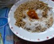 Într-un castron se cerne făina şi laptele praf şi se omogenizează.