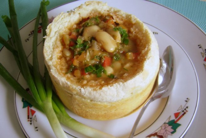 Daca zeama se mai fierbe inca o ora " toata chestia devine un miracol" Se adauga bulion, sare, piper si cimbru dupa gust . Se mai fierbe 10-12 minute si gata! " ninge cu patrunjel ,imbracand in straie de primavara zana buna a noptilor de iarna, care numai cu paine de tara si ceapa stropita cu otet de mere , isi arata superbele puteri."