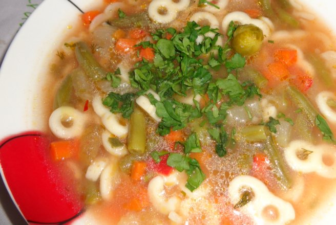 Denumirea am dat-o dupa legumele congelate folosite . O ciorba super-rapid , chiar turbo de preparat.