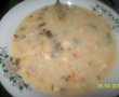 Se va spumui dupa care se continua fierberea, se va arunca apa murdara si punem din nou la fiert intr-o oala cu apa curata carnea si reincepem fierberea. Cand observam ca furculita patrunde in carne putem sa adaugam si legumele care vor fierbe impreuna cu carnea. Se lasa sa fiarba la foc potrivit, se adauga orezul, sarea si piper alb.