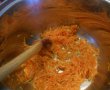 Intr-o oala am pus ulei si am calit ceapa taiata marunt si morcovi, patrunjelul si telina razuite. Le-am calit cam 5 minute ca sa isi lase dulceata.