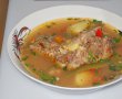 Cand a fiert carnea de pe oase, adaugam legumele congelate si celelalte taiate cubulete.