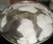 Carnea taiata cubulete se pune intr-o oala cu 3 l apa rece. Cand apa a dat in clocot si apare spuma , se indeparteaza cu ajutorul unei spumiere .