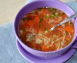 Va zic si voua o reteta simpla si buna de ciorba cu carne de vitel, legume si taitei. Sper sa va placa.