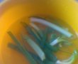 Se lasa aproximativ 10 minute sa fiarba , se adauga sare si piper dupa gust .