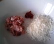 Dam pe razatoare branza pe care o amestecam cu carnea tocata si condimentele.
