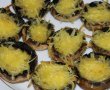 Se scot, se pune cascaval ras in fiecare ciupercuta si se introduce din nou in cuptor pentru 15-20 minute pana se topeste cascavalul si se rumeneste putin.
