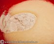Mixam ouale bine cu zaharul pana se topeste. Adaugam faina, apoi laptele cate putin, amestecand continuu.