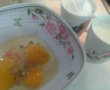 Se bat bine ouale cu sare si un praf de piper, se adauga laptele, uleiul si faina.
