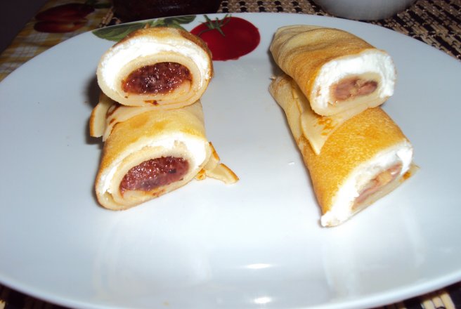 se ia fiecare clatita se unge intr-o margine cu crema de ciocolata.