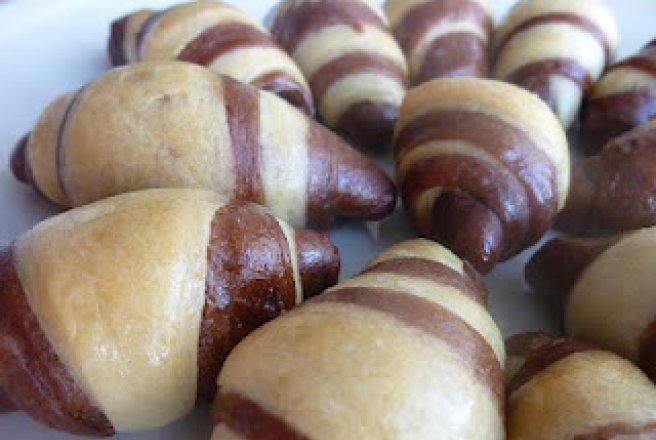 Mi-am adus aminte de un dulce deosebit pe care l-am mancat pentru prima data acum cativa ani - cornulete bicolore cu rahat. Imi plac foarte mult mai ales pentru ca nu contin untura ca majoritatea retetelor autohtone de cornulete.