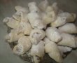 Faina cernuta o amestecam cu praful de sare si praful de copt. Separat amestecam untura cu ouale si zaharul vanilat. Apoi adaugam apa si otetul si la final faina si framantam un aluat care se poate intinde usor, fara sa se lipeasca.