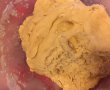 Amestecam, apoi incorporam treptat faina pana aluatul va capata o consistenta ferma.