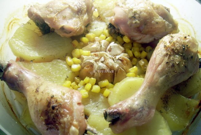 In mijlocul vasului se pune capatana de usturoi curatata doar de invelisul exterior si putin desfacuta.