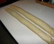 Framantam pana nu se mai lipeste de maini. Lasam aluatul sa creasca langa o sursa de caldura timp de 1 ora sau pana isi dubleaza bine volumul.