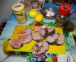 Am curatat pestele de solzi, i-am scos intestinele, l-am taiat rondele si l-am spalat bine, apoi l-am lasat sa se scurga de apa. Am tregatit un sos din mustar, ulei, zeama de lamaie, sare si piper, am amestecat ca la maioneza, apoi am pus rondelele de peste in sos si am alsat cca 1 ora sa se odihneasca-n sos. Dupa 1 ora am scos rondele l-am asezat intr-o tava, am turnat peste rondele tot sosul din castron, apoi am taiat cateii de usturoi in rondele si i-am pus peste rondele de peste. Am taiat cateva felii de lamaie si le-am pus in tava, apoi am turnat apa. Am acoperit tava cu folie de aluminiu, am bagat tava in cuptor, cu focul foarte mic, pentru cca 1 si 1/2 ore. Se poate manca asa simplu sau cu o garnitura de cartofi natur si patrunjel verde. Eu l-am savurat doar cu patrunjel verde. E bun atat cald cat si rece. Sa vaeti pofta !