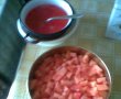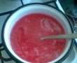 compozitie pepene: miezul de pepene se scoate si se taie cubulete, se scot si samburii. Se prepara geletina conform instructiunilor de pe ambalj apoi se amesteca cu vinul, zaharul, zeama de la o lamaie si 200 ml apa.Se ferbe timp de 1 min.