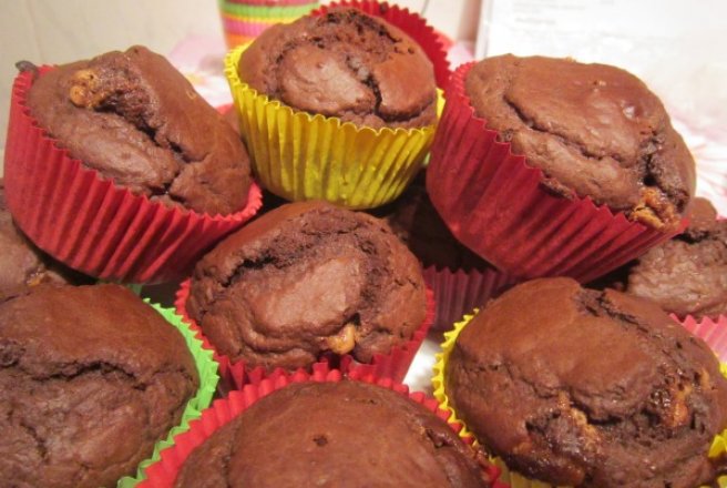 Formele de briose se tapeteaza sau se pun hartiutele pentru briose si se toarna amestecul in ele.