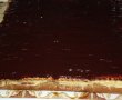 Topim ciocolata impreuna cu frisca lichida la bain marin. Omogenizam si intindem glazura deasupra prajiturii.