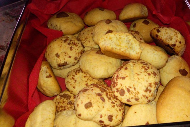 Cu aluatul rezultat, formam bilute, ajutandu-ne de podul palmelor, iar fiecare bila formata o turtim putin si le trecem prin ciocolata rasa sau adaugam bucati de ciocolata in ele.