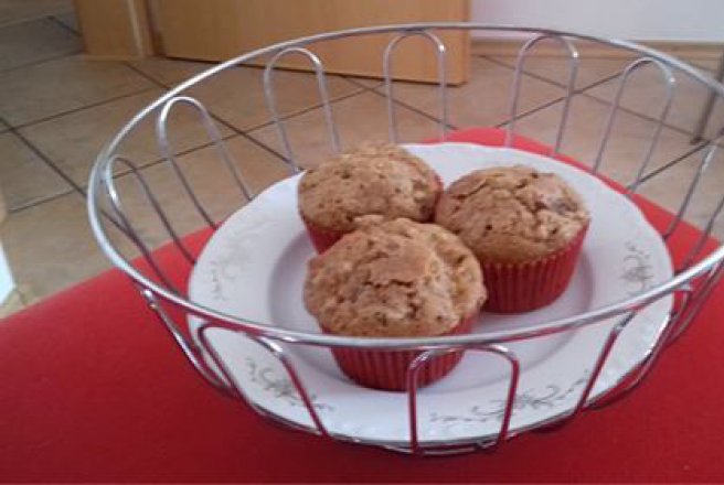 Se adauga, lingura cu lingura, ingredientele umede peste cele uscate. Se adauga cubuletele de mar si ciocolata taiata grosier, se amesteca si imparte in formele de briose.