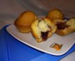 Intr-o tava de briose tapetata cu hartiute sau forme de silicon umplem doar pe jumatate fiecare forma, adaugam cate o lingurita de dulceata (eu am pus de visine), apoi umplem fiecare forma cu restul de aluat.