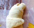 Cornurile astfel formate se aseaza intr-o tava unsa cu ulei si tapetata cu hartie de copt. Se ung cu galbenusurile amestecate cu lapte si se introduce tava la cuptor pana cand se rumenesc frumos.