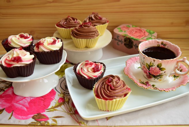 Foarte simple aceste Coșulețe Duo cu ciocolată și dulceață de trandafiri, dar de mare efect asupra iubitorilor de deserturi cu multă ciocolată.