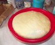 Aluat : Se amesteca laptele cald cu iaurtul la temperatura camerei, se adauga 4 linguri de zahar si 4 linguri de faina si plicurile de drojdie dr. oetker. Se omogenizeaza bine si se lasa la dospit cca 15 min pana se umfla.