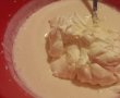 Intr-un vas, am amestecat crema de branza, iaurtul, laptele condensat si frisca batuta. Am pregatit gelatina conform instructiunilor de pe plic si apoi am adaugat-o in compozitia de mai sus.
