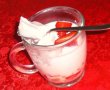 Punem crema de iaurt peste baza de biscuiti si capsuni si dam la frigider pana se intareste.