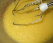 am mixat ouale spuma cu sarea, am adaugat zaharul si am continuat cu mixarea, apoi am adaugat faina si am pus in tava