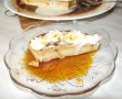 Am scos vasul de yena din cuptor si l-am lasat sa se raceasca ( trebuia sa-l las sa se raceasca foarte bine, n-am avut rabdare ), apoi am rasturnat pe un platou continutul vasului de yena, adica flan-ul (cica asa se numeste toata treaba asta), am ornat cu frisca si am servit cu pofta.