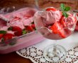Am zis să profit din plin de căpșunile care au invadat piața și am preparat o mega delicioasă înghețată de căpșuni servită cu jeleu de căpșuni.