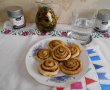 Când s-au format toți melcișorii, se ung de două ori cu siropul pregătit în prealabil și se presară zahăr brun.