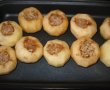 Cureti merele si le scobesti interiorul, incepand de la codita, indepartand cotorul si lasand un perete gros de 1 - 1,5 cm, fara a le gauri dintr-un capat in altul. Tai miezul de nuca in bucatele marunte. Pui in interiorul merelor zahar amestecat cu scortisoara si nuca. Asezi merele intr-o tava unsa cu putin ulei si le dai la cuptor pentru aproximativ 40 minute. Le verifici si cand sunt moi, le scoti din cuptor si din tava si le lasi sa se raceasca. Din 10 linguri de apa, 7 linguri de zahar, 2 linguri de cacao si o lingura de margarina pregatesti siropul pe care il fierbi aproximativ 15 minute si il adaugi peste mere. In locul siropului se poate folosi o ciocolata, care se topeste.