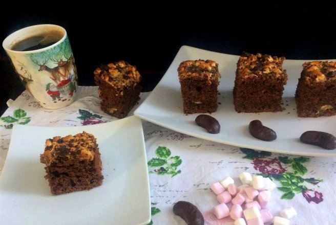 MOD DE PREPARARE RETETA Desert negresa cu mini marsmallows: