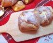 Ultima oară când am cumpărat brânză dulce de vacă, mi s-a părut uşor făinoasă, aşa că acum am găsit nişte urdă dulce care a fost mult mai gustoasă, îţi venea s-o mănânci aşa simplă. Am vrut să pregătesc mai multe cu ea şi m-am hotărât la poale-n brâu. Am pus mai puţin zahăr la aluat, decât se foloseşte de obicei, însă mi s-au părut suficient de dulci. Pentru ai mei, le-am adăugat în umplutură şi coajă de lămâie şi stafide. Au ieşit foarte fragede şi gustoasse.